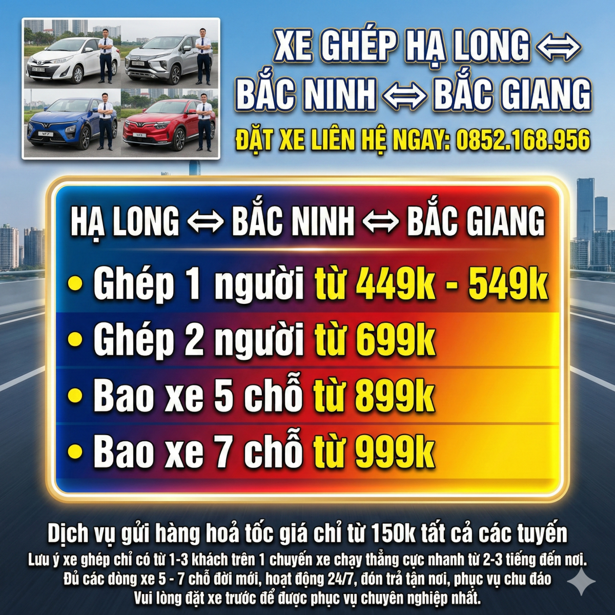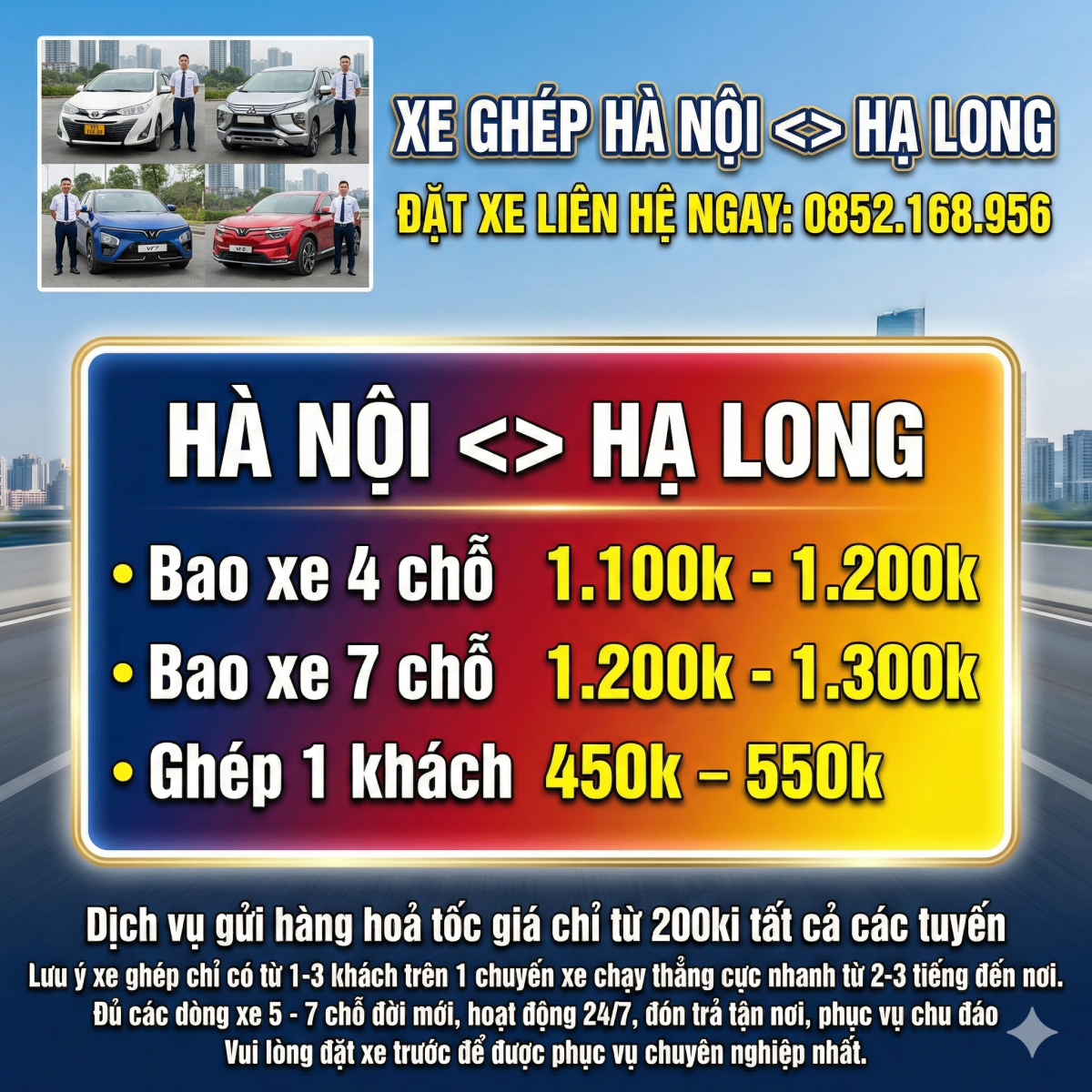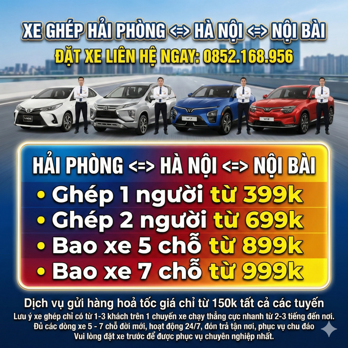 Xe Ghép MÓNG CÁI – HẠ LONG – HẢI PHÒNG – HÀ NỘI – NỘI BÀI – BẮC NINH – BẮC GIANG xin trân trọng gửi tới Quý khách hàng lời chúc sức khỏe và thành đạt trong cuộc sống để được dịch vụ taxi tốt quý khách vui lòng liên hệ: 0852.168.956 MÓNG CÁI – HẠ LONG – HẢI PHÒNG – HÀ NỘI – NỘI BÀI – BẮC NINH – BẮC GIANG cung cấp dịch vụ xe ghép Hải Phòng – Hà Nội, xe đi các tỉnh, phục vụ 24/7, dịch vụ xe taxi sân bay, taxi đường dài trọn gói giá rẻ.